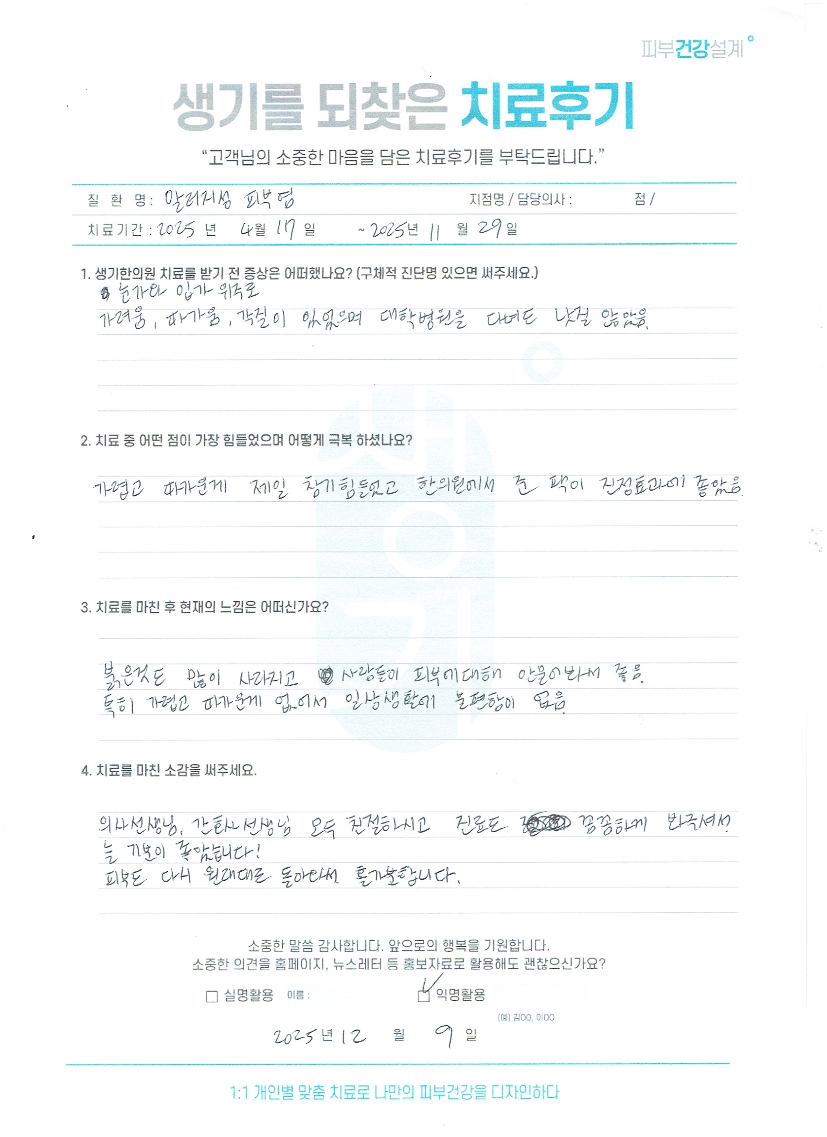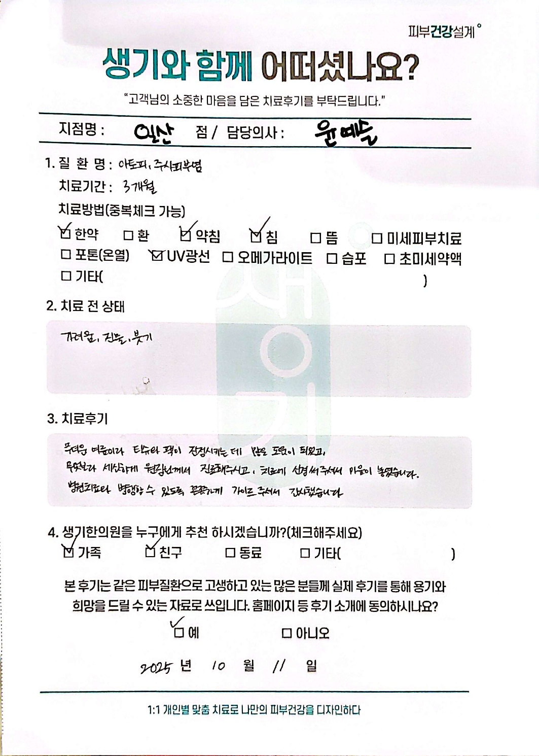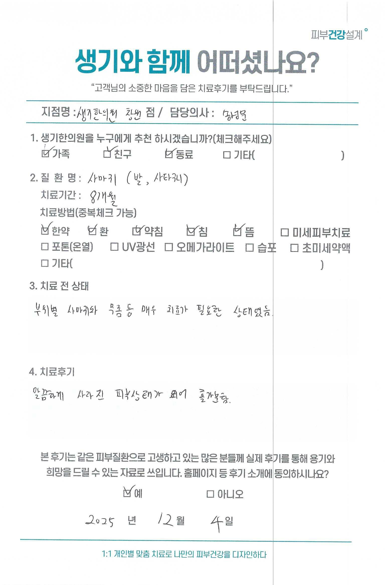 생기한의원과 함께하신 생생한 자필 및 영상 후기를 소개합니다.