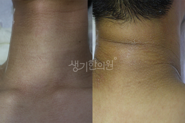 생기 치료 사례는 동일인의 치료 전후 사진을 인위적 수정하지 않은 내용입니다.