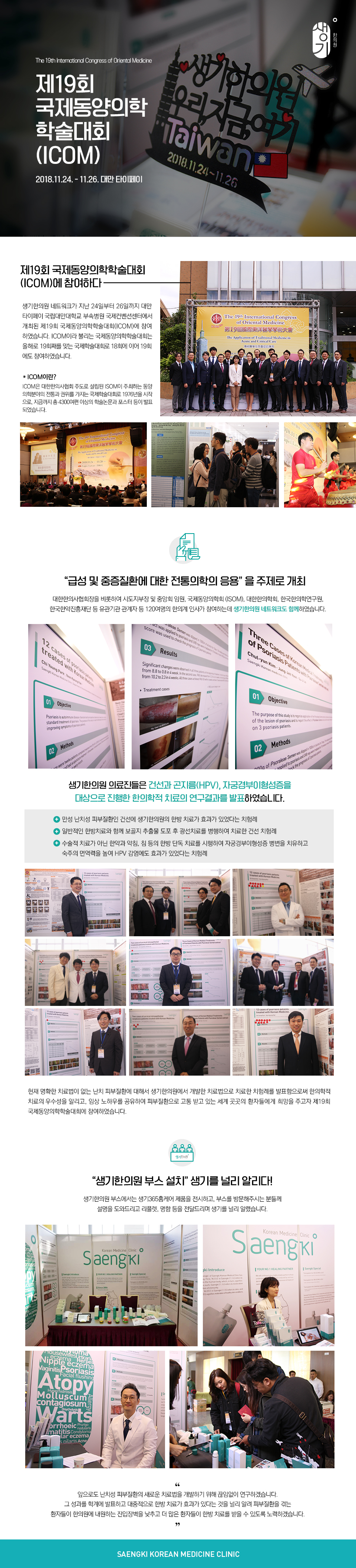 생기한의원 제19회 국제동양의학학술대회(ICOM) 참가 및 연구결과 발표