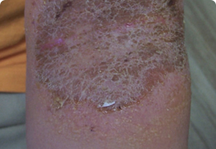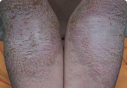 긁는 습관으로 인해 피부 표피가 나무껍질처럼