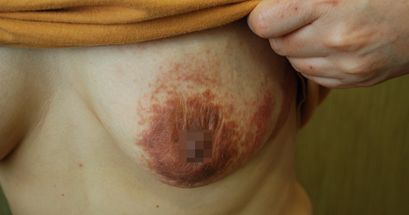 증상 부위가 유륜을 넘어 확대되고
